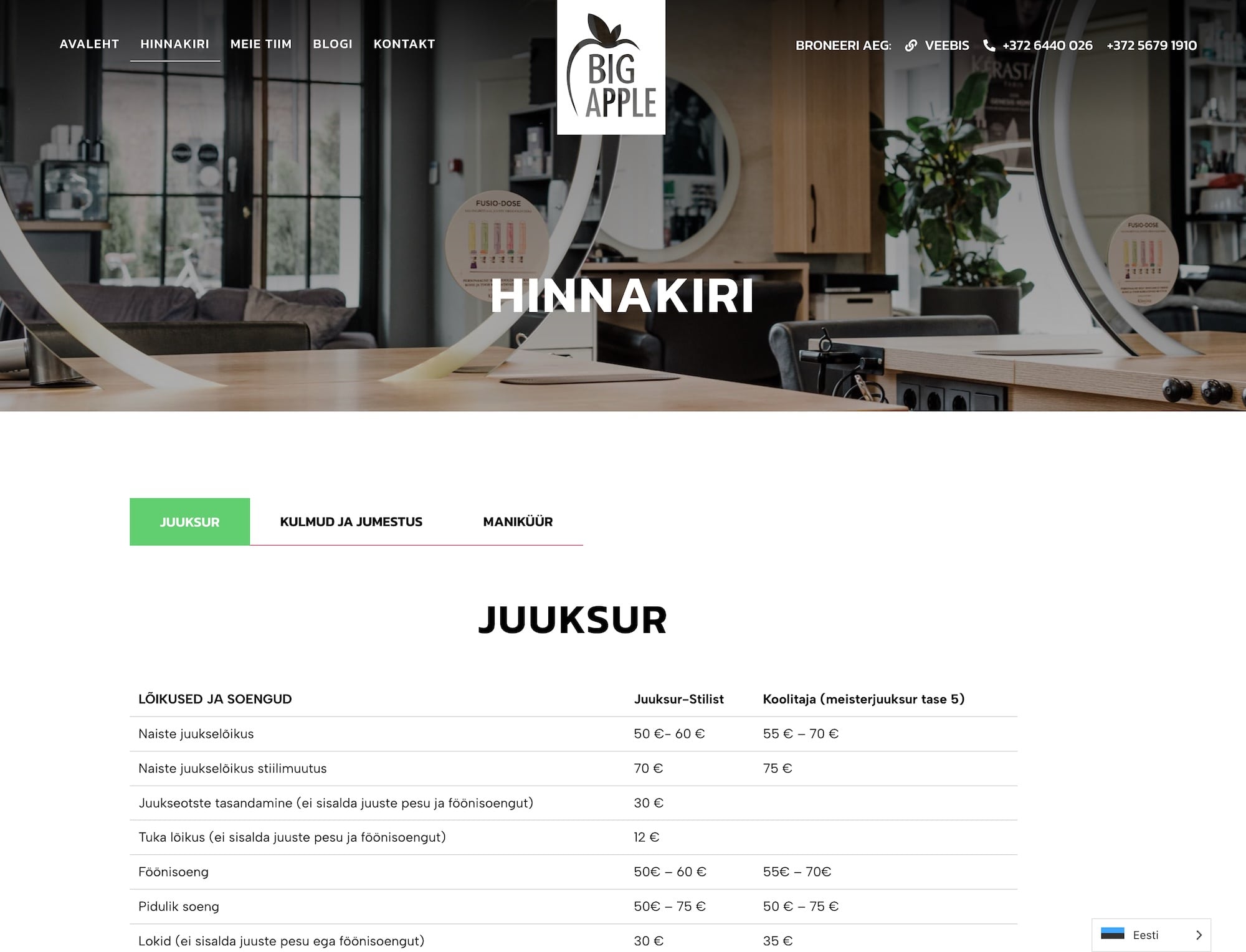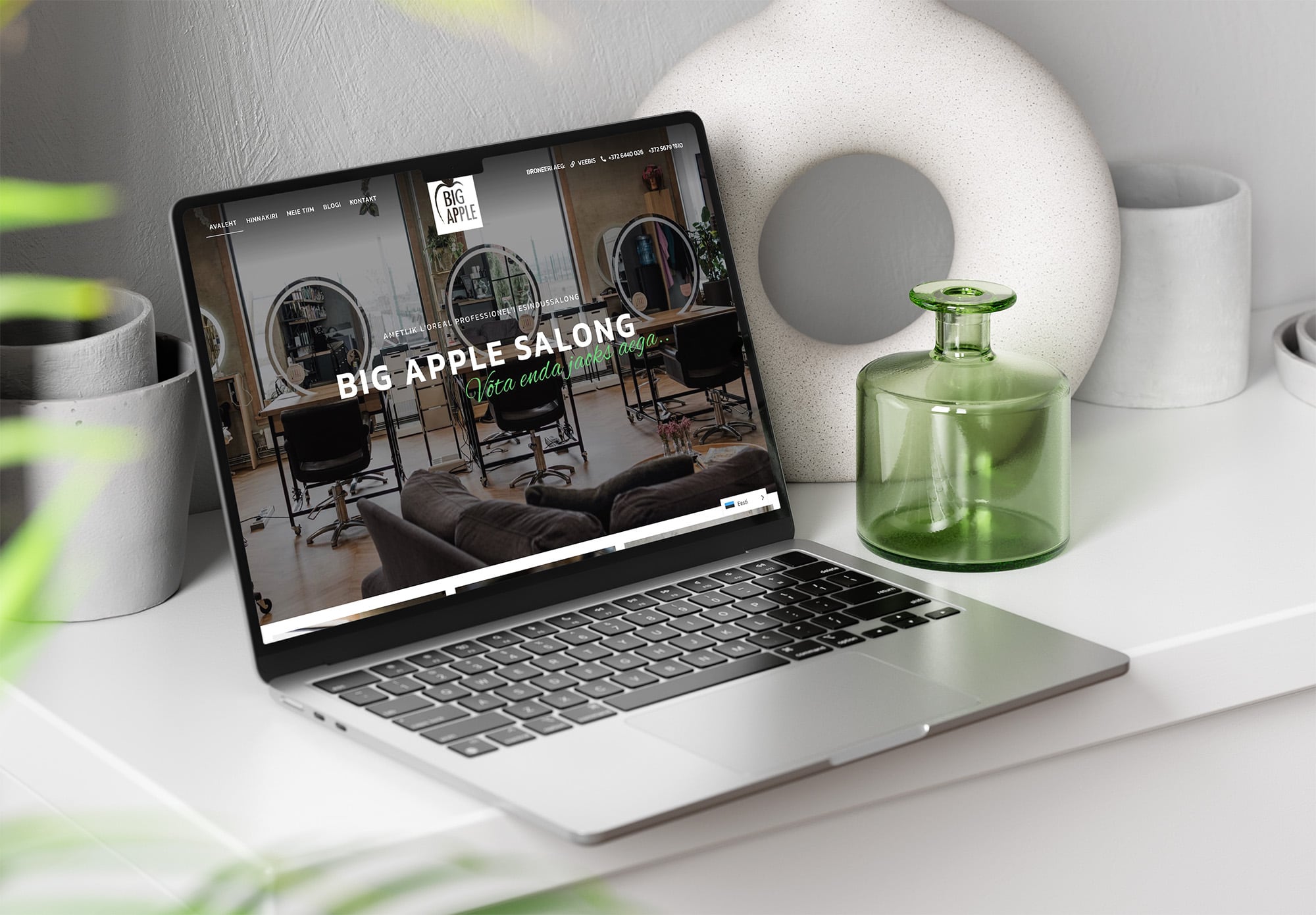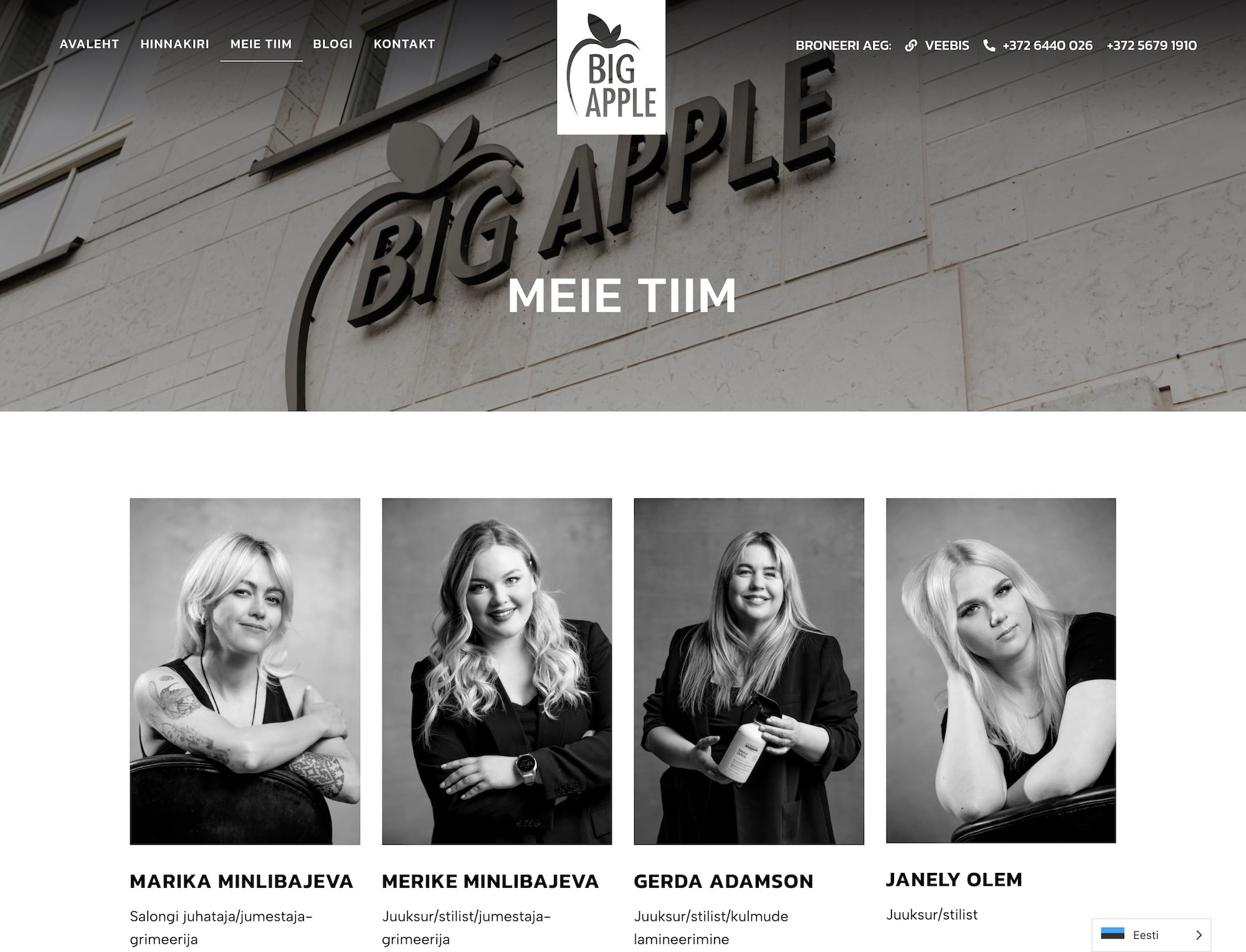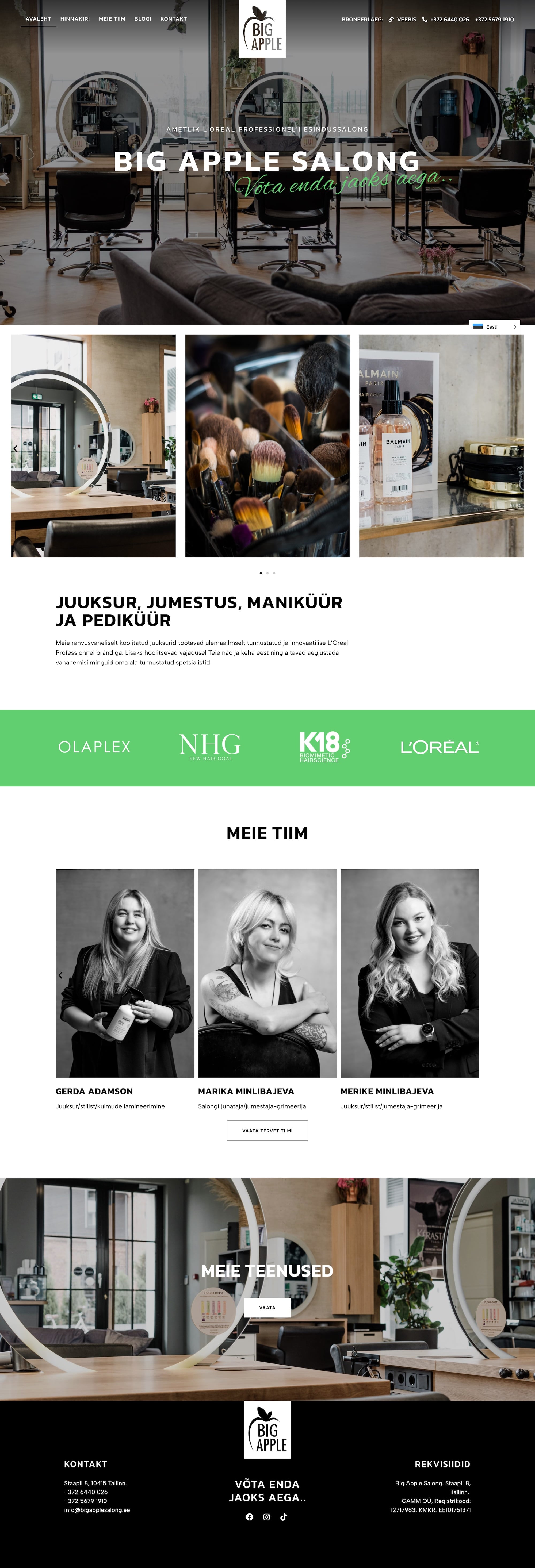 Veebileht Big Apple Salongile, mis sisaldab hinnakirja, blogi, meeskonna ja kontaktide lehti nii eesti kui inglise keeles. Klient saab veebilehelt ülevaate teenustest ning mugavalt aega broneerida.