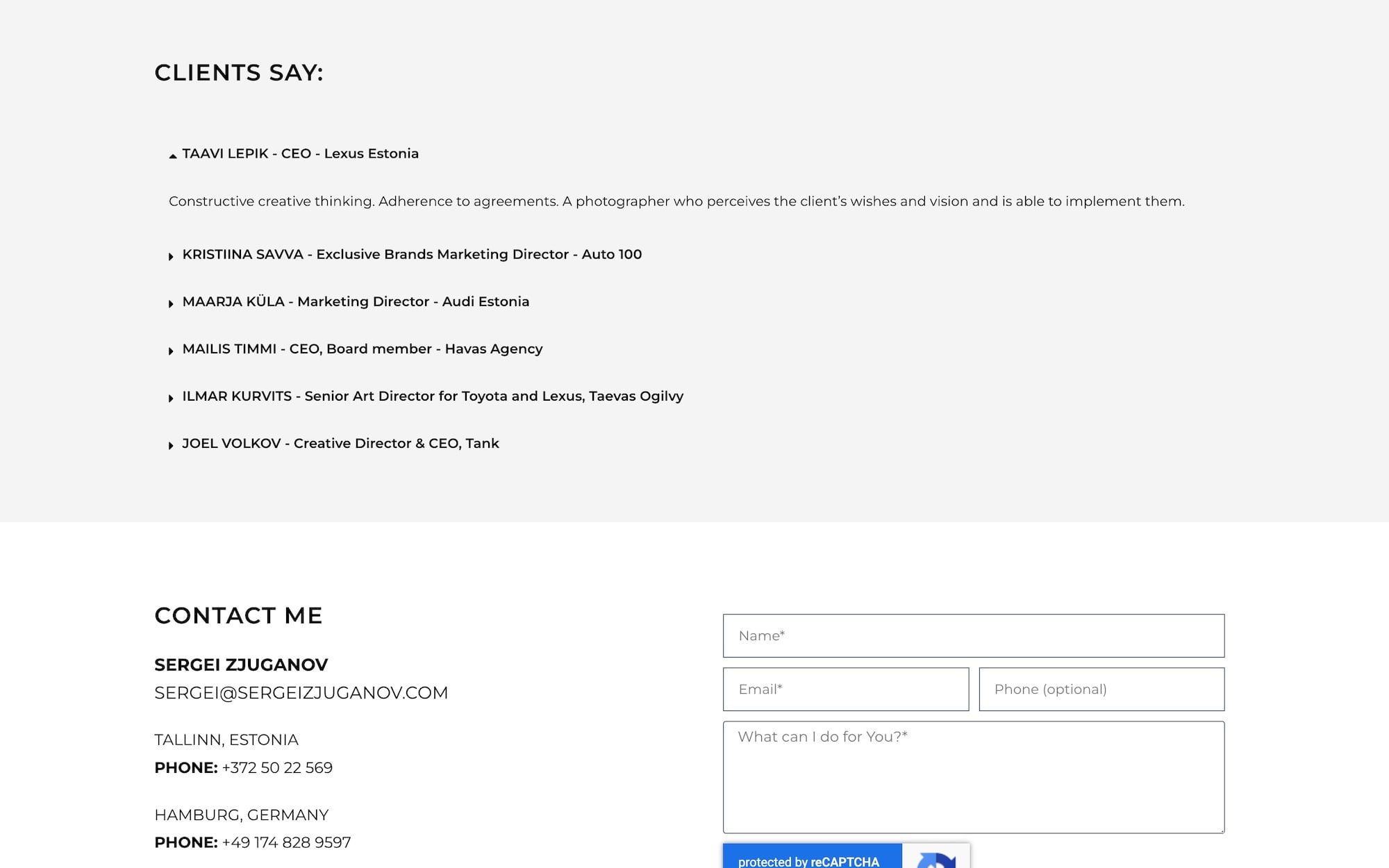 Tegin galerii veebilehe tuntud Eesti fotograafile Sergei Zjuganovile. Veebilehe eesmärk on fotograafil oma töid esitleda ja uusi kliente leida.