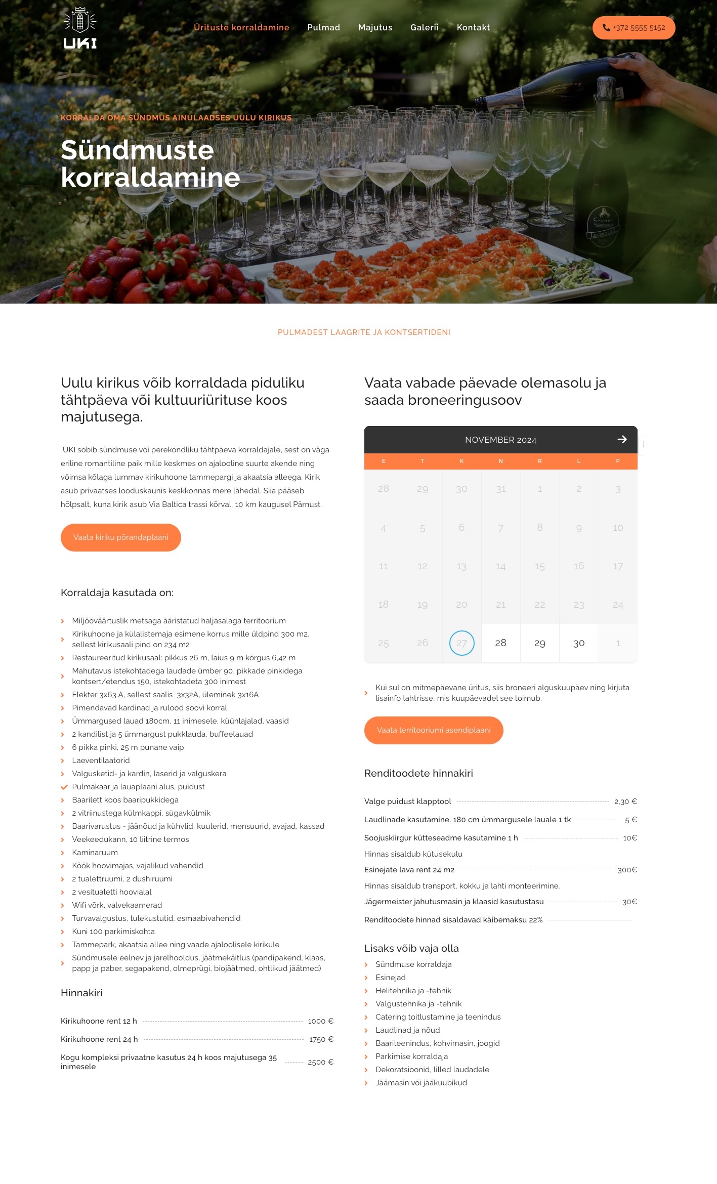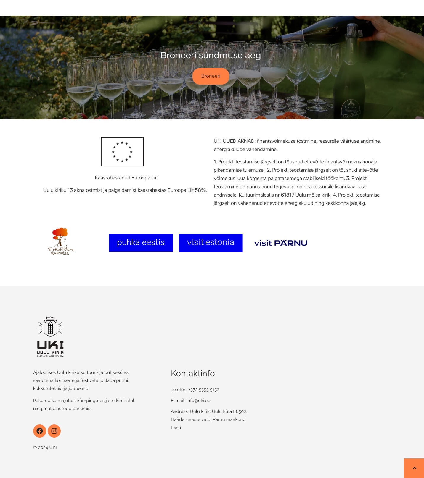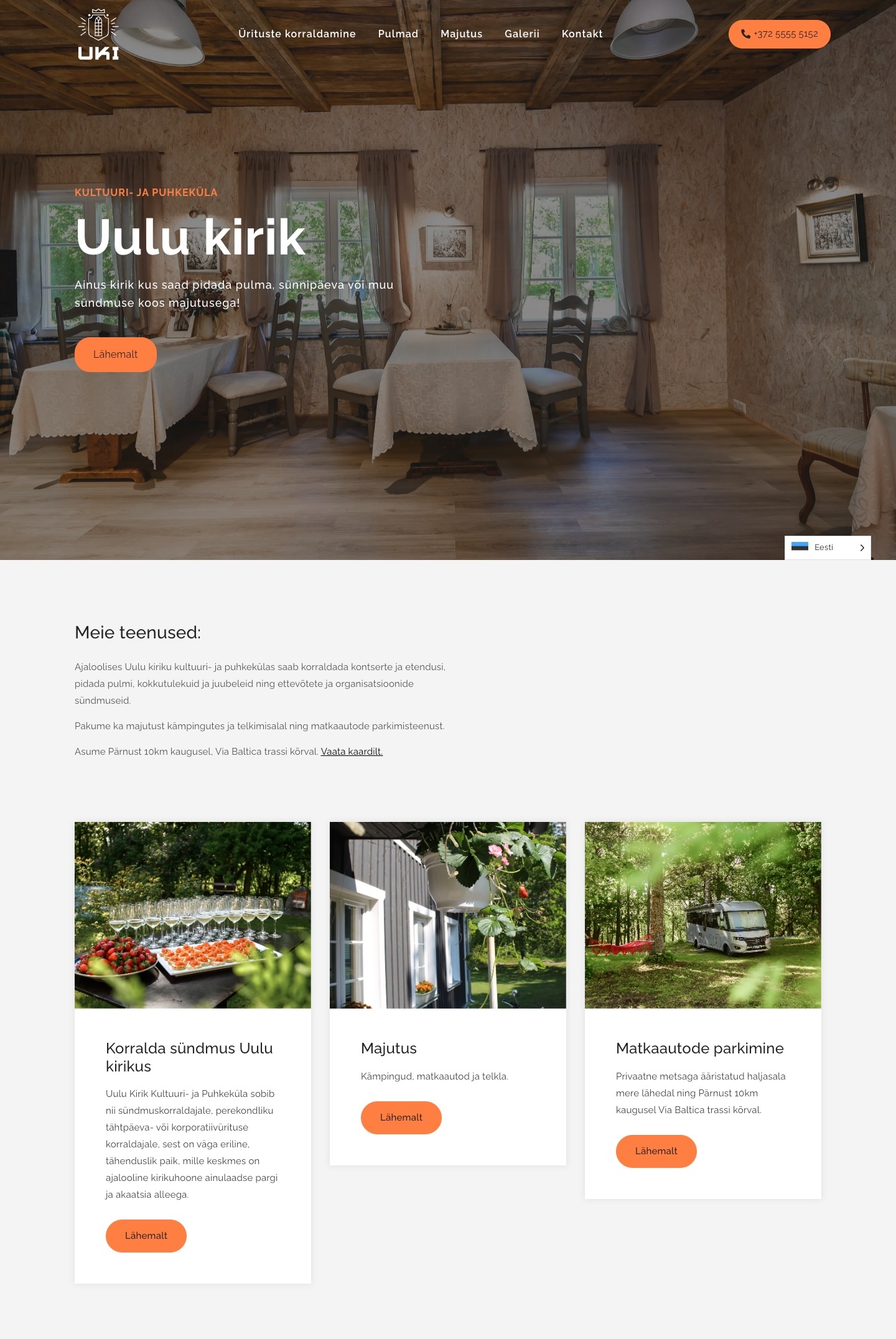 UKI vajas veebilehte, kus oleks välja toodud kõik teenused ning saaks broneerida puhkeküla erinevaid hooneid ja majutust. Sai loodud veebileht koos UKI tutvustusega, fotode ning videoga, välja toodud kõik teenused ning asukoha ja põrandaplaanid. Lisaks broneeringute süsteem ürituste jaoks ja broneerimisvorm majutuse jaoks.