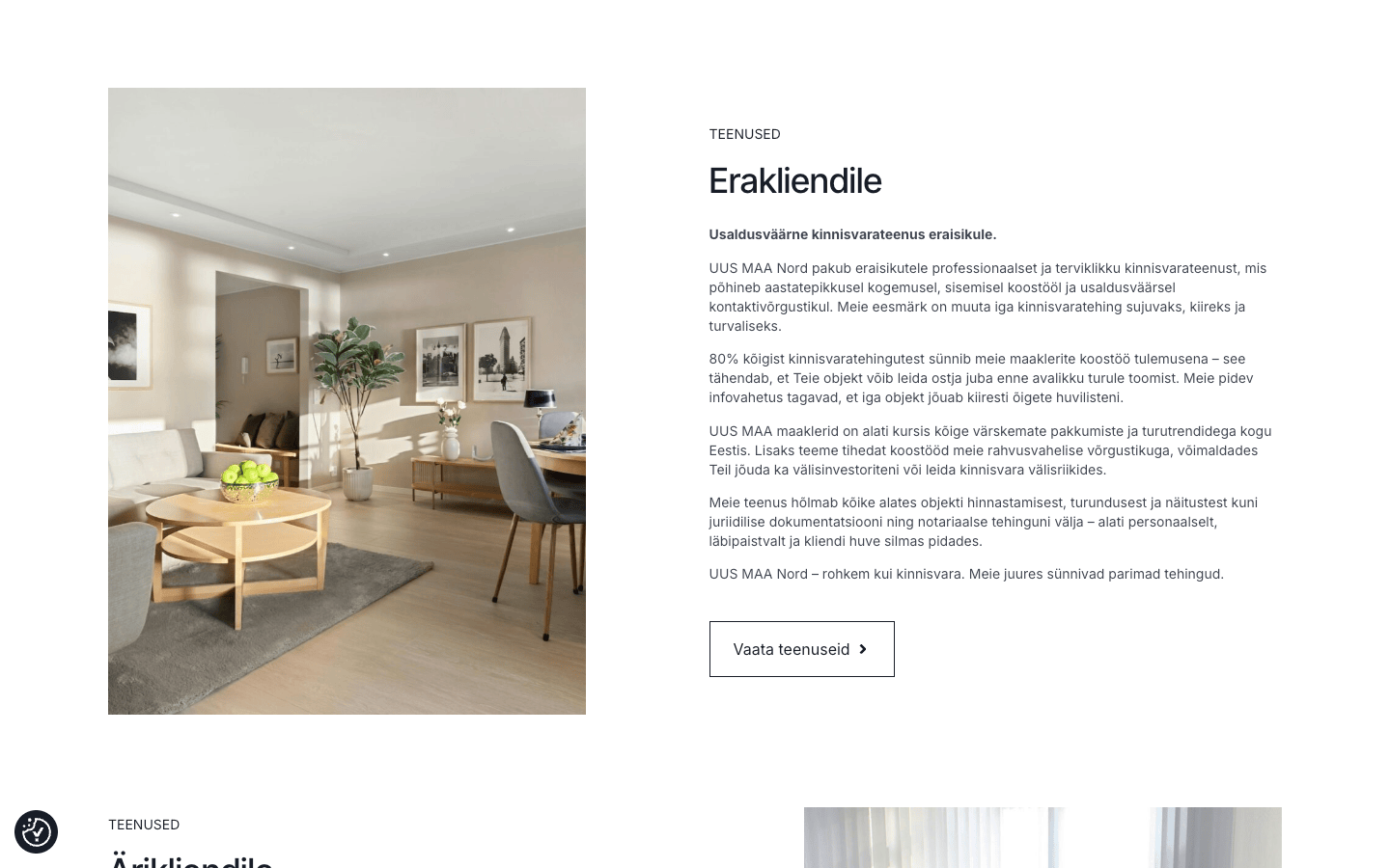 Projekti eesmärk oli luua kaasaegne ja esinduslik veebileht, mis peegeldab ettevõtte professionaalsust ning pakub külastajale mugavat viisi kinnisvaraobjektide vaatamiseks ja maakleritega ühenduse võtmiseks.